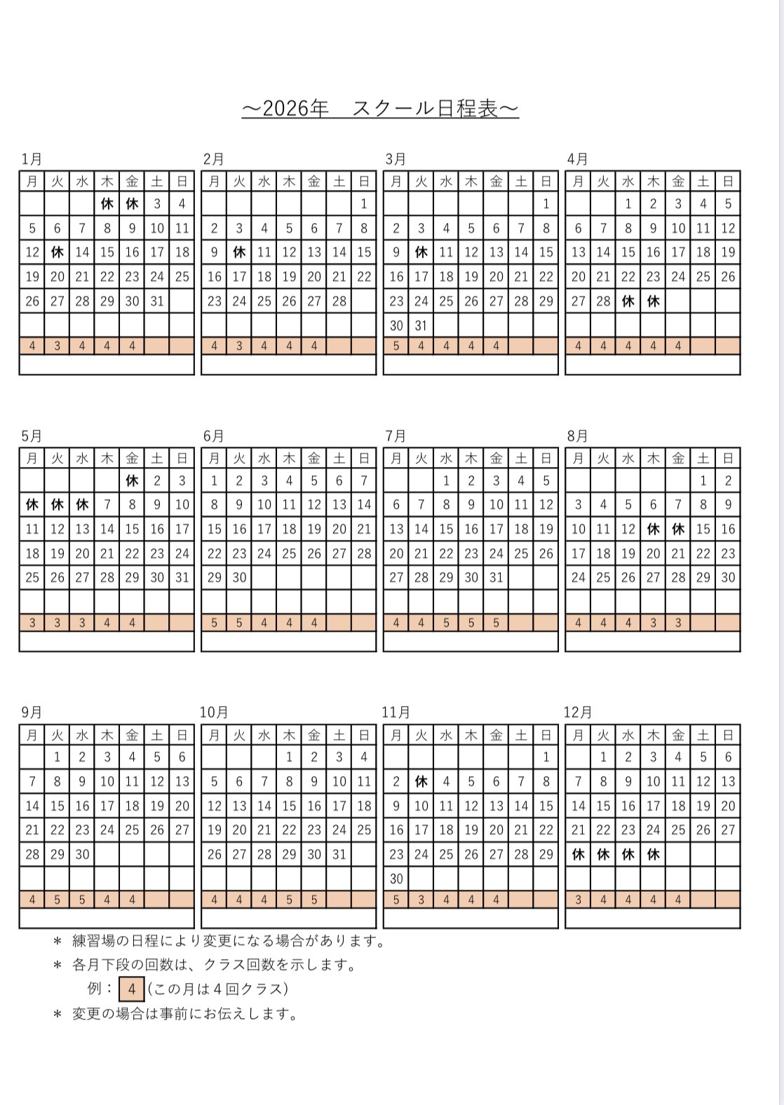 ※[年始のレッスン開始日]は1月5日(月)からとなります。